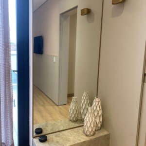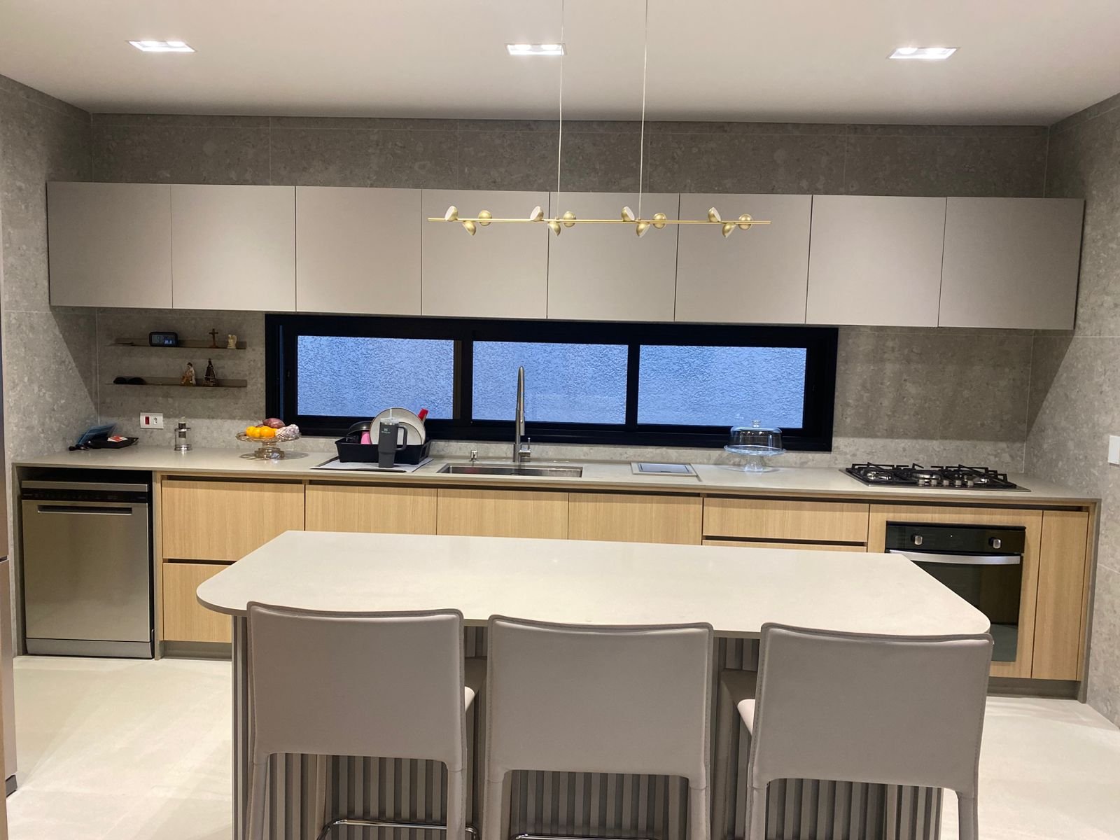 Design moderno e higiene total com superfícies tecnológicas de cores uniformes.